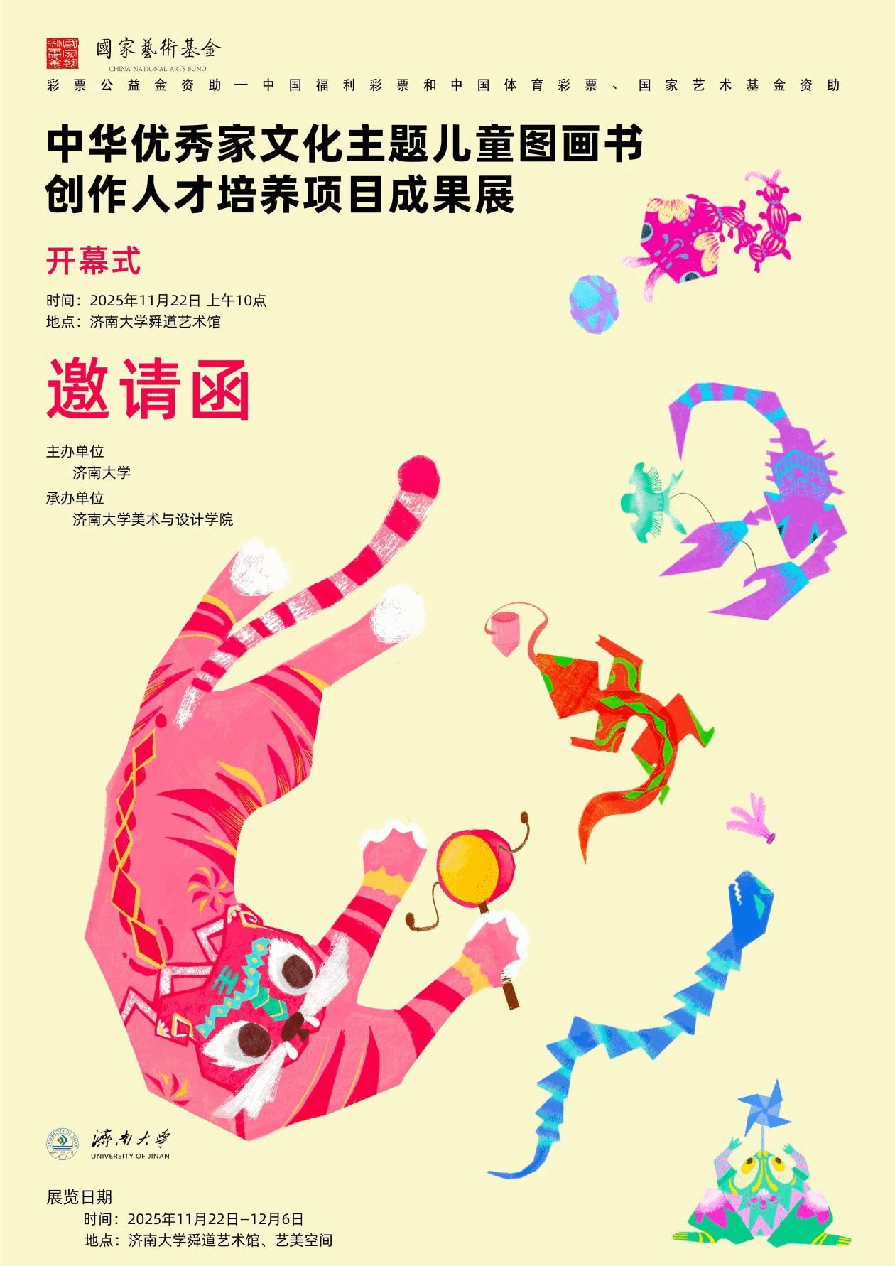 在这个寓意收获与感恩的初冬时节,我们怀着温暖的心情,诚挚邀请您在2025年11月22日莅临济南大学舜道艺术馆,共同见证一场关于“家”的文化盛宴——“中华优秀家文化图画书创作人才培养”项目学员结业成果展开幕式。