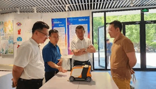 党委书记陈春锋,副院长杨海波,党委副书记、副院长何贵亮,副院长赵忠超,院长助理桑曙光及工业设计系、产品设计系、院实训中心负责人陪同参观了学院“思政引领、美育浸润、艺科交融、产教协同-本科教育教学成果汇报展”。