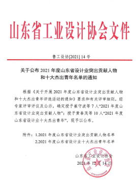 为推动山东省设计创新事业的发展,山东省工业设计协会和北京光华设计发展基金会签署战略合作协议,自2021年起共同举办“光华龙腾奖·山东设计突出贡献人物和山东十佳工业设计师”评选活动。2021年12月,发布《关于2021年度山东省设计业突出贡献人物和十大杰出青年名单的公示》,济南大学设计学院副院长、设计创新研究院执行院长杨海波荣获2021年度山东省设计业十大杰出青年。