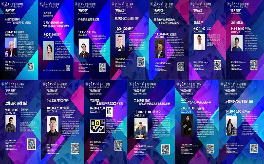 为保障疫情期间教学质量,提升专业建设水平,进一步烘托学院学术气氛,营造浓厚创新环境,2022年4月4日至4月20日,设计学院结合疫情期间工业设计专业两项实习实践课程,邀请了15位院校专家、一线设计师以及部分校友为同学们做了系列线上学术讲座及交流活动,持续两周的讲座累计吸引了上百家院校师生和社会各界听众8000余人次参与。
