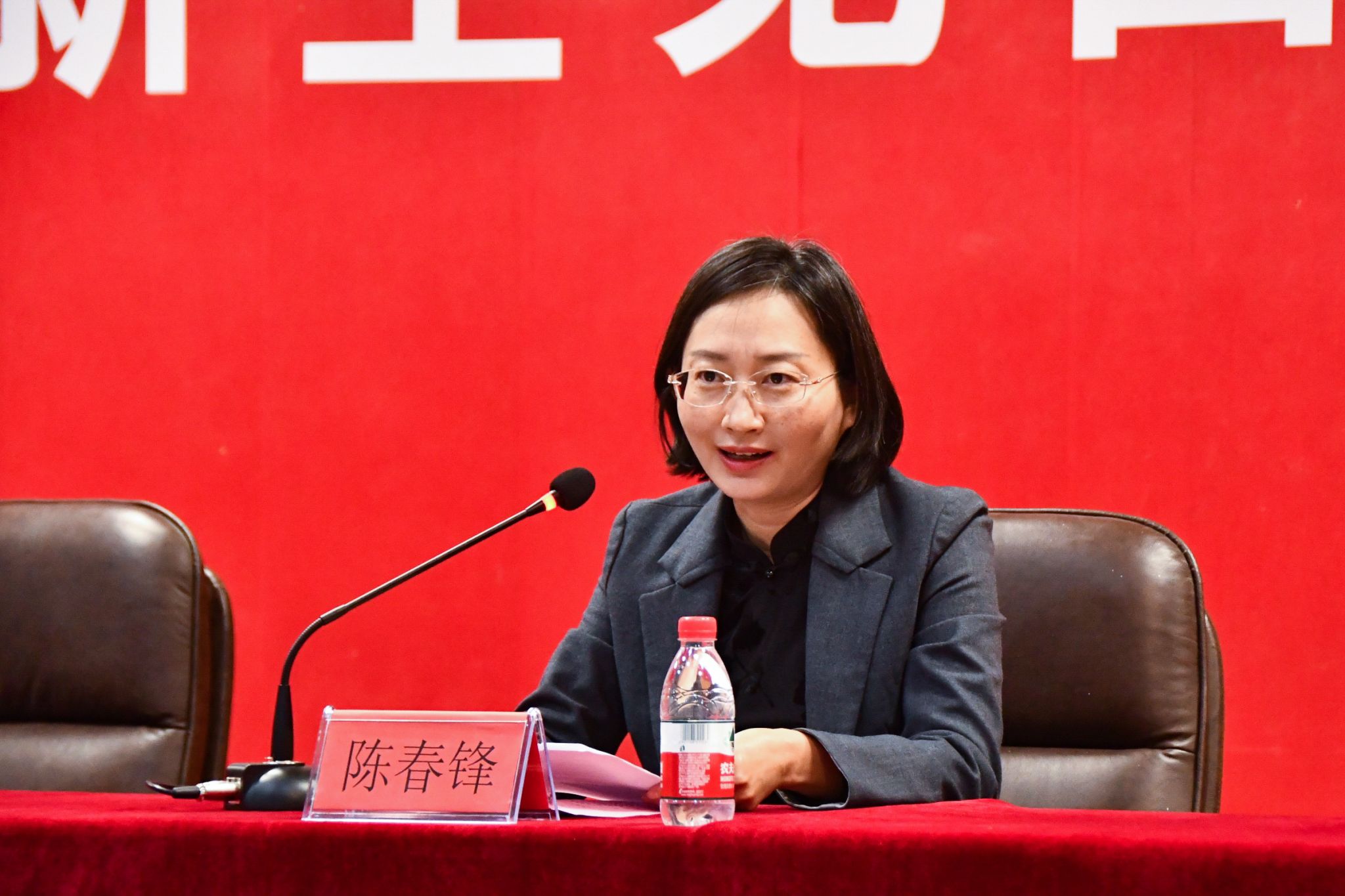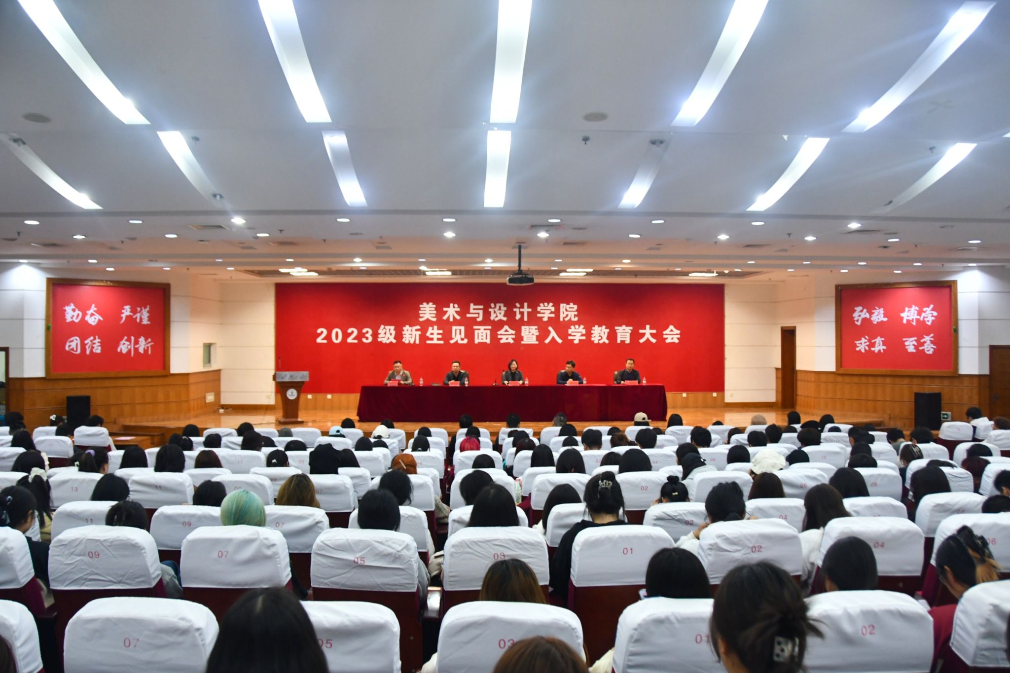 在激昂的国歌声中,在场师生高声齐唱,会议正式拉开帷幕。党委书记陈春锋代表学院,对新同学的到来表示欢迎。从一位大一新生母亲的角度,对2023级400名新生提出殷切期望:一是要有向上向善的激情,塑造品格。自觉遵循向上向善的要求,做好人,做好事,做好学问,争做新时代好青年。二是要有浪恬波静的心态,潜心学业。实现从“学会”到“会学”、从“学好”到“好学”的转变。三是要有匠心筑梦的赤诚,勇担大任。传承精雕细琢、精益求精的精神理念,开阔视野,勇担新时代赋予青年学生的历史使命。四是要有敢作先锋的冲劲,勇于创新。对能做、想做、爱做的事,要敢试敢为,努力从无到有、从小到大,把理想变为现实。