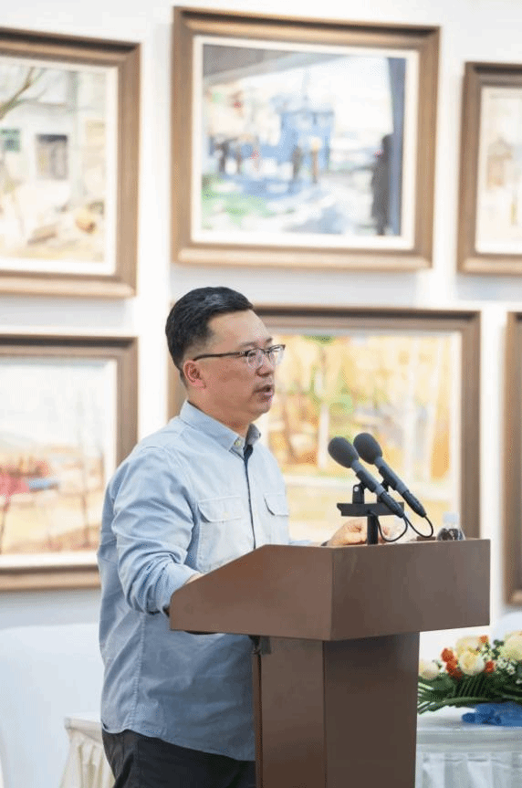 杨海波院长在致辞中指出,此次在明水古城与顶度集团的大力支持下举办的艺术展览,不仅促进了各高校美术与设计专业师生间的交流,有助于学生专业水平的提升,而且有助于促进学生就业创业、推动高校社会美育工作的开展,达到了高校专业服务于社会产业发展,产业又促进高校专业发展的双赢。