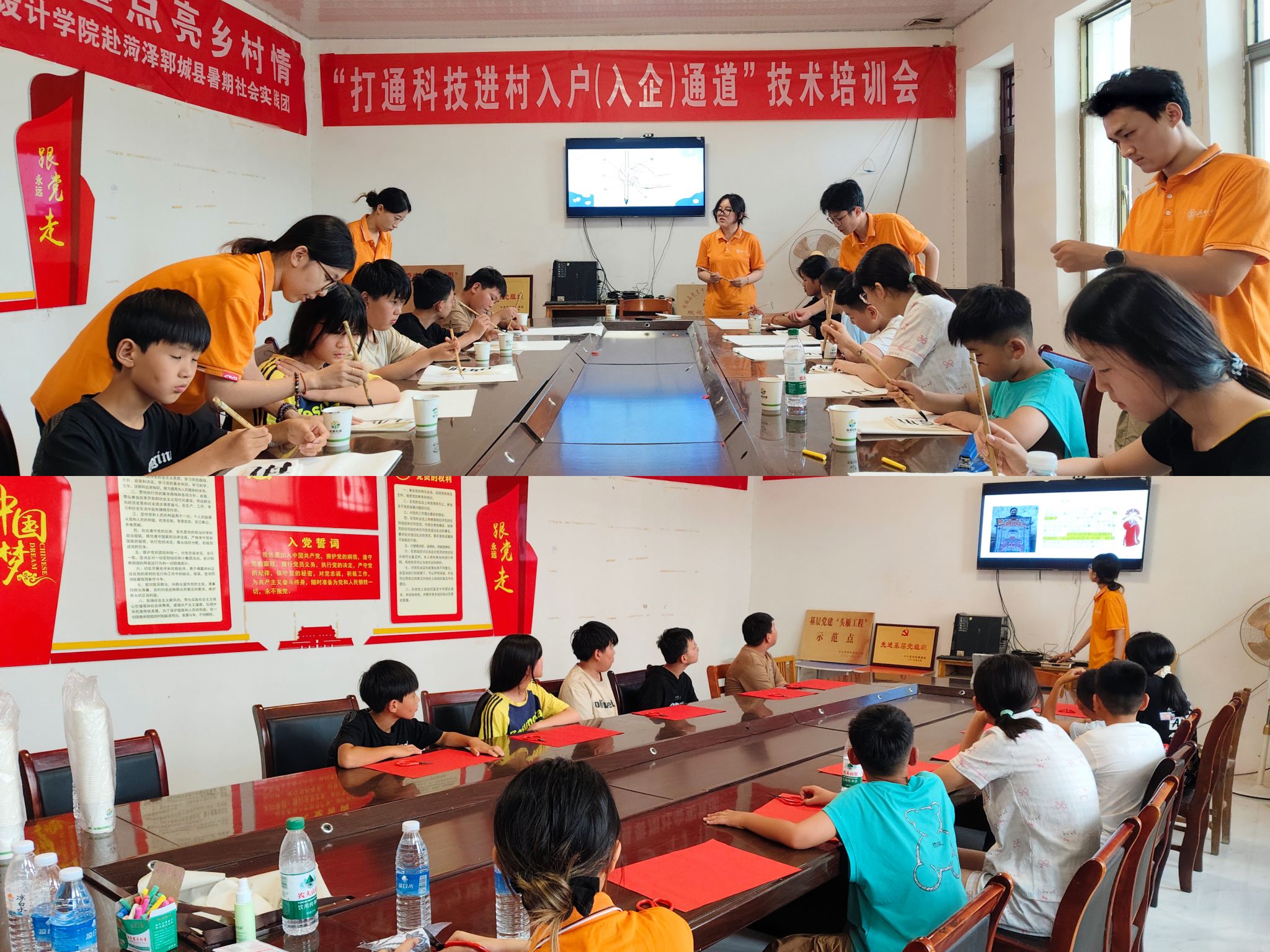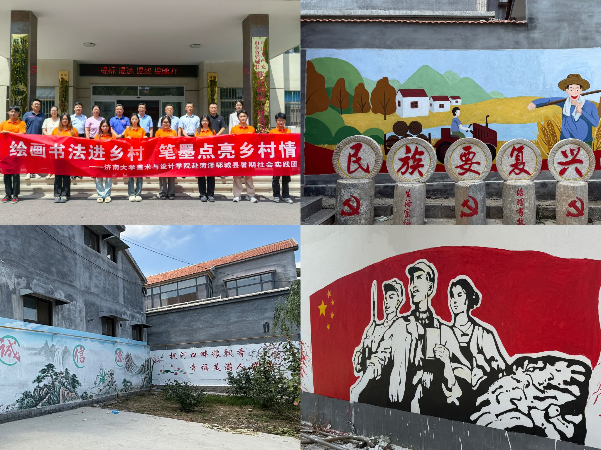 组织社会实践团队,分别奔赴日照五莲县与菏泽郓城县,开展以“以美润心,以笔绘兴”及“绘画书法进乡村,笔墨点亮乡村情”为主题的暑期“三下乡”社会实践活动。