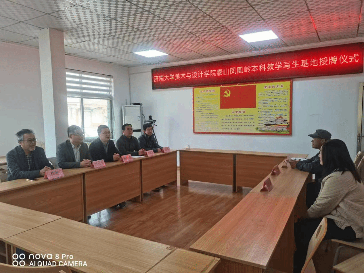 近日,电竞牛 与万德凤凰岭写生创作基地“大学生社会实践基地”签约暨“写生创作基地”挂牌仪式在长清区万德镇顺利举行。电竞牛 副院长杨海波、党委副书记、副院长何贵亮、院长助理桑曙光、美术系主任陈炜、油画教研室主任林波、长清区万德镇八号路管理区书记王伟、万德凤凰岭写生创作基地校长张传彬、经理刘天芳、马场村村委委员宋敏共同出席签约挂牌仪式。