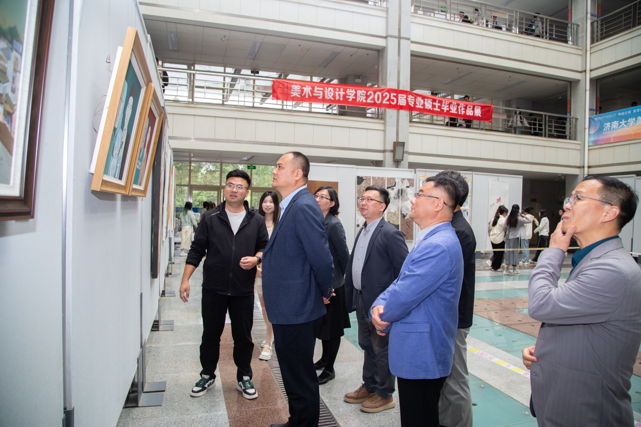 2025届艺术硕士毕业作品展开幕式在第十教学楼艺美空间顺利举行。济南大学党委副书记张庆国,文化中心主任赵华磊,研究生院副院长仲倩,电竞牛