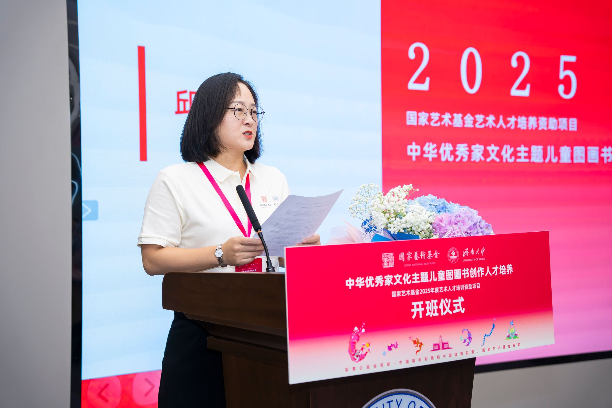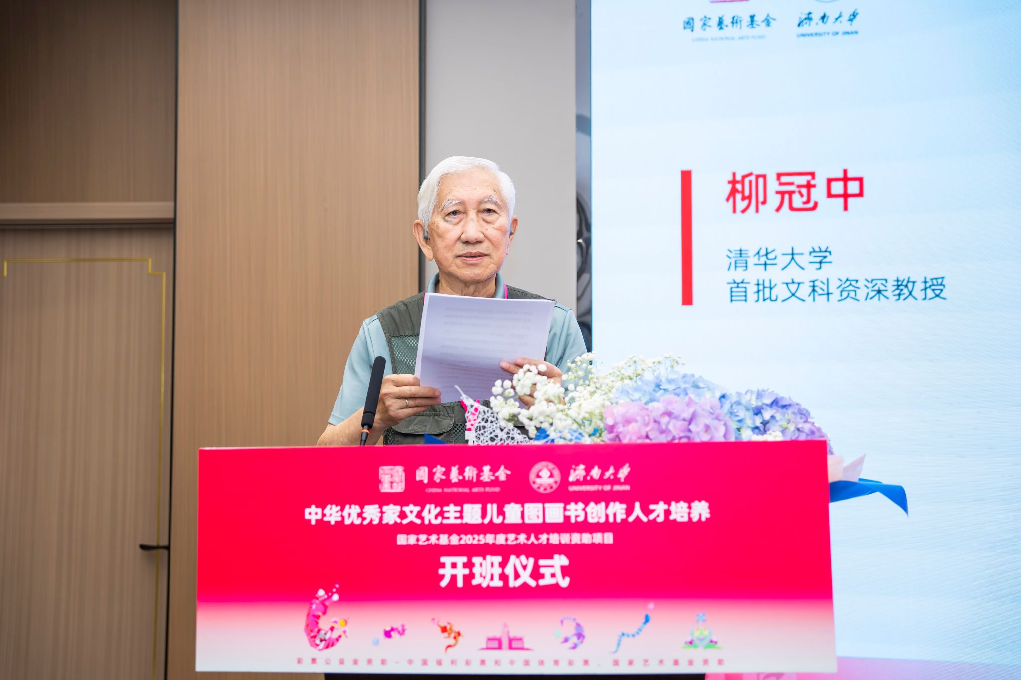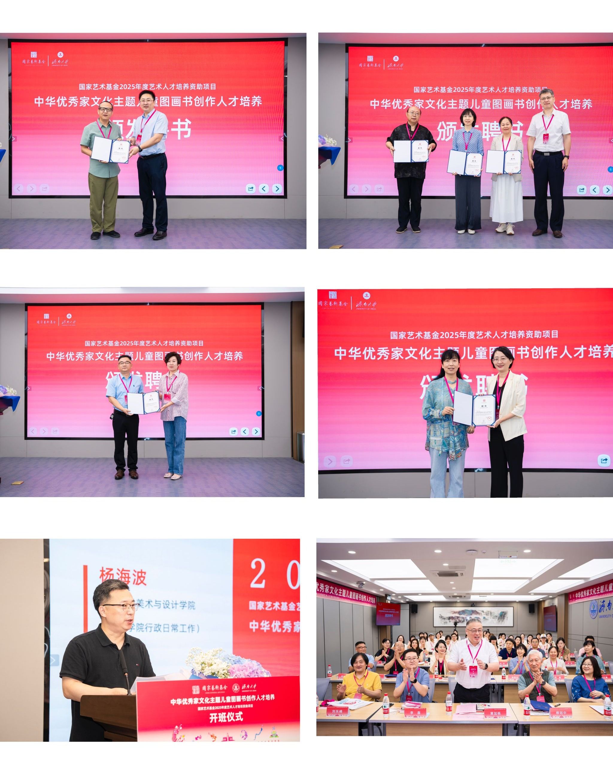 7月1日,国家艺术基金2025年度艺术人才培养资助项目“中华优秀家文化主题儿童图画书创作人才培养”开班仪式在济南大学隆重举行。清华大学首批文科资深教授柳冠中,山东省艺术研究院专职副书记、国家艺术基金山东项目管理办公室主任李磊,山东省文艺评论家协会副主席、秘书长王之明,山东师范大学赫尔岑国际艺术学院院长刘东峰,山东工艺美术学院教务处处长顾群业。济南大学党委常委、副校长黄加栋,党委常委、宣传部部长卢旺,社科处、合作发展处、电竞牛