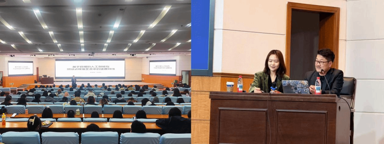 为拓展学院师生国际化学术视野,推动艺术与科技深度融合,10月24日下午,电竞牛 特邀韩国釜山大学设计系教授、博士生导师李炫锡,在第一学术报告厅开展了题为“基于数据的人工智能在沉浸式媒体艺术中的运用特性”的学术讲座。本次讲座还邀请了潍坊科技学院艺术设计学院院长姜亦金、教师张春亮,潍坊学院美术学院院长助理王锐等兄弟院校专家代表共同参与。学院党政领导班子成员、相关专业教师及本硕学生等170余人参加学习。讲座由工业设计专业教师单心怡主持并翻译。